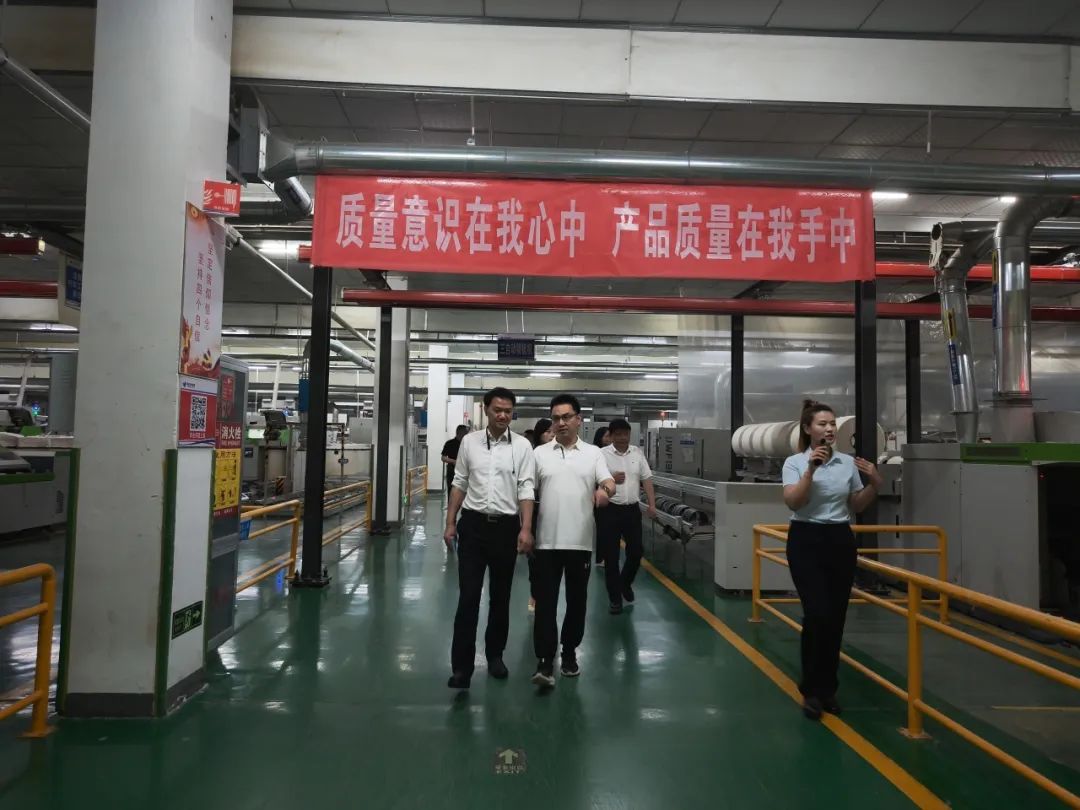 会前,朱仕君一行先后参观了纺织公司10万锭全流程智能纺纱车间、服饰公司智能服装生产线和集团文化展厅,沉浸式了解企业百年发展历程、工厂智能化改造、产能提升及运营情况。